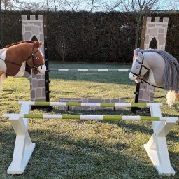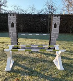 - 2 höhenverstellbare Hindernisse im Burg Design (20 bis 80 cm Sprunghöhe)